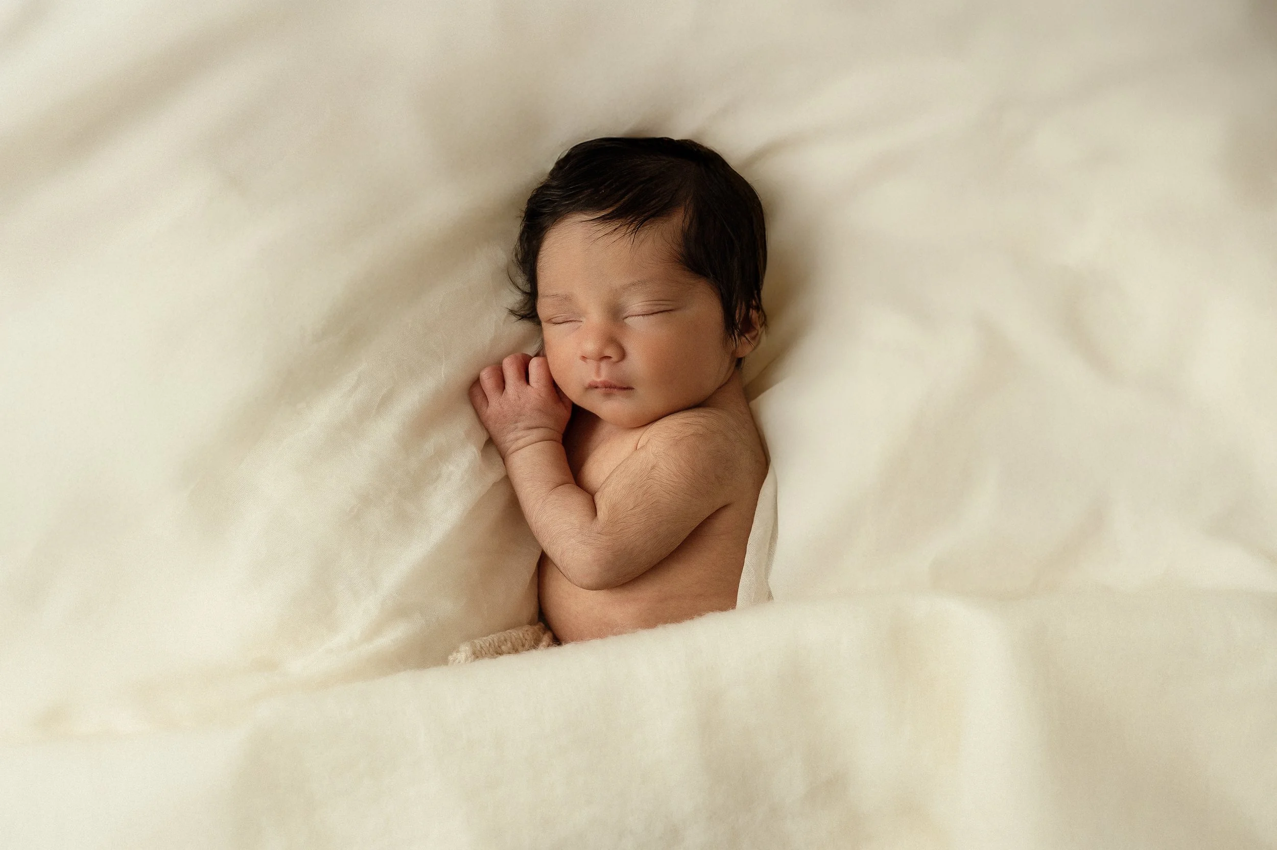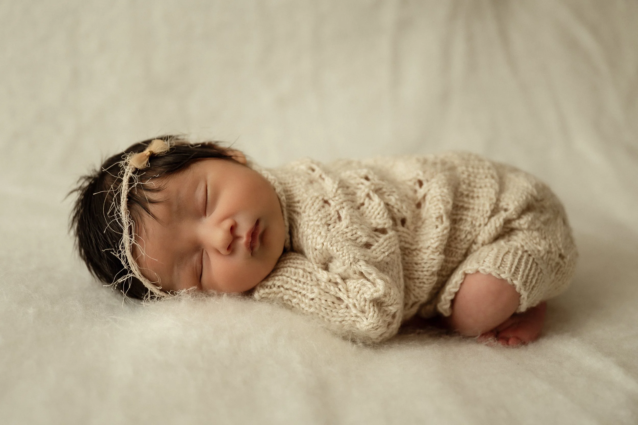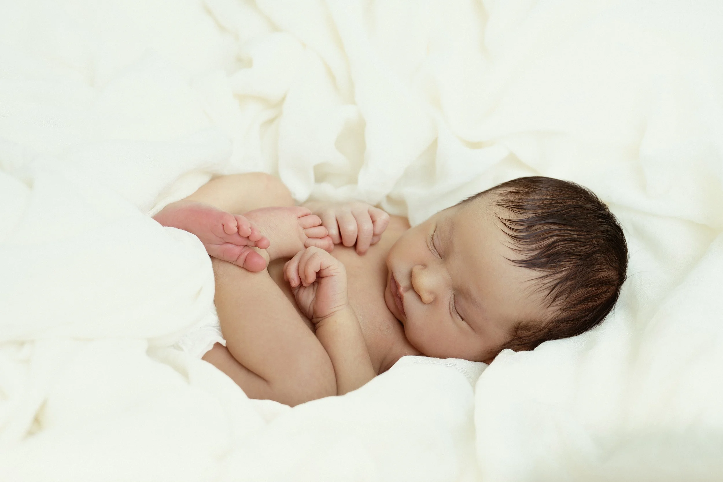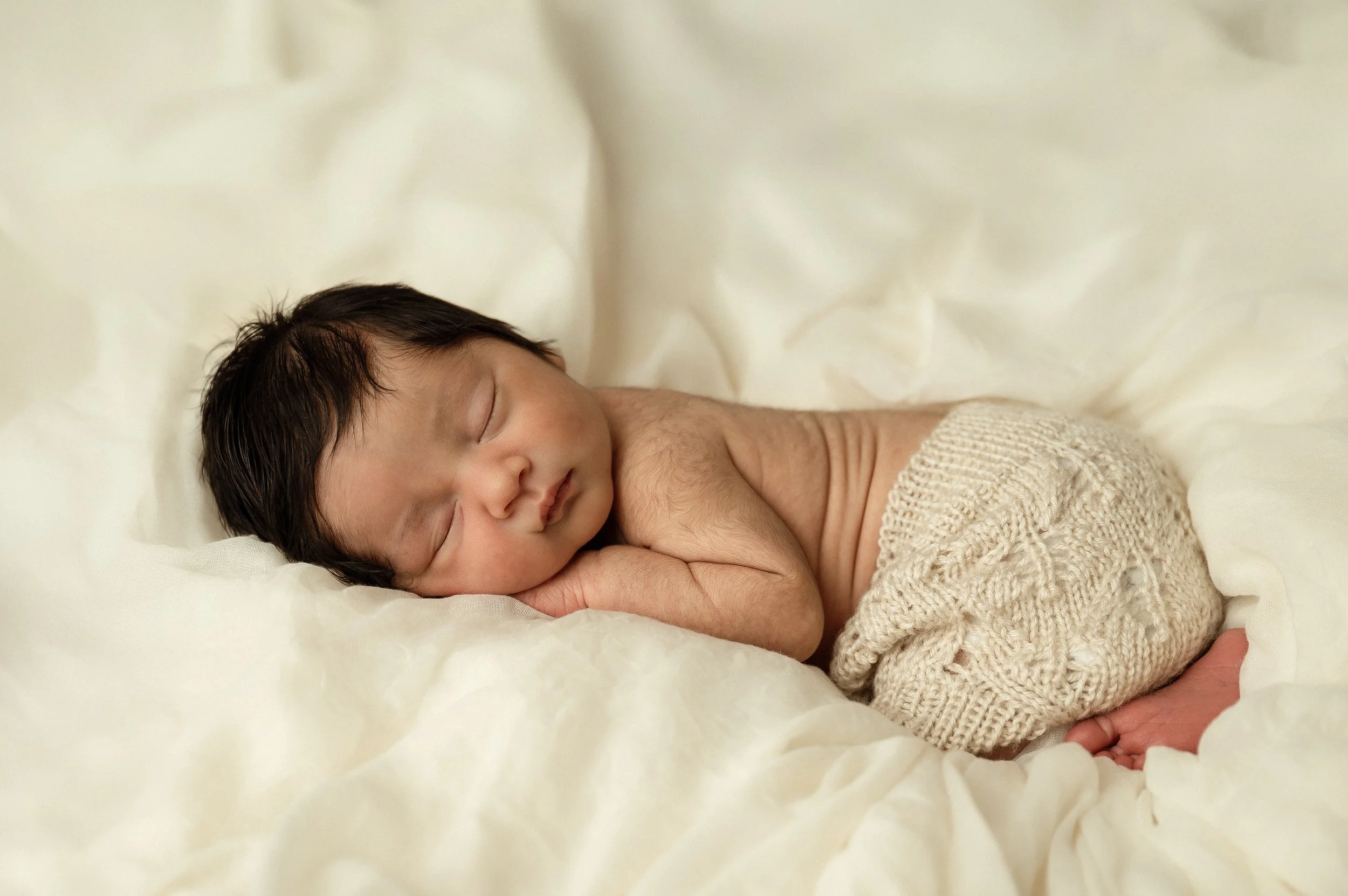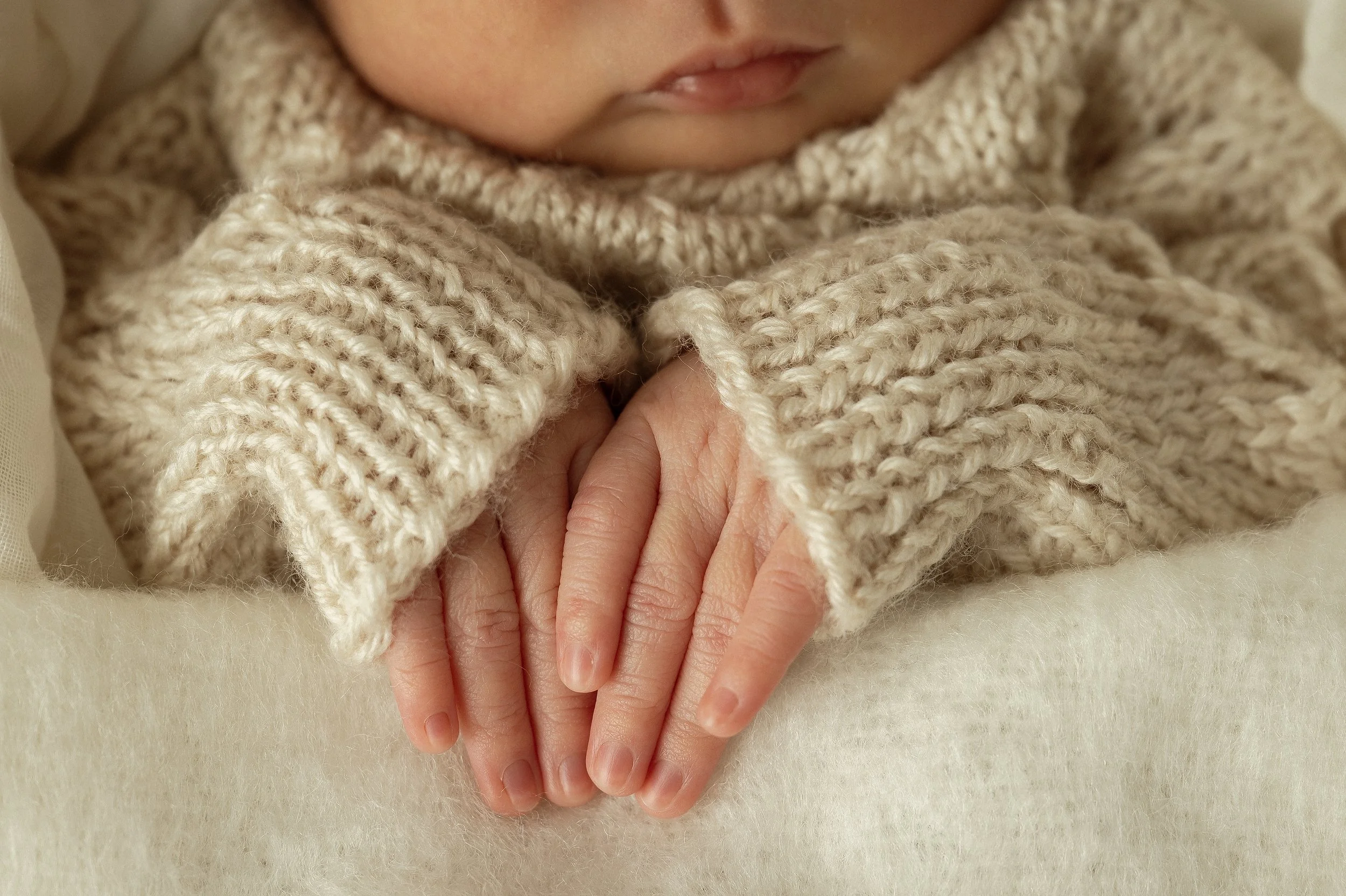 Newborn sessions are stress-free, capturing the very first weeks of your baby—usually between 5 and 15 days old. Time flies, and you’ll treasure every tiny detail as they grow and change so quickly in their first year—even in that very first week. Little rolls, tiny toes, the details of their hands, the soft hair on their back, their fetal curl… every little thing.
